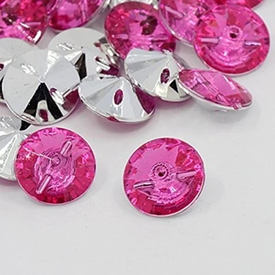 25 x Dark Pink Round 15mm Acrylic Crystal Effect Faux Rhinestone 1 Hole Sewing Buttons Crafts, Knitting, Bling
