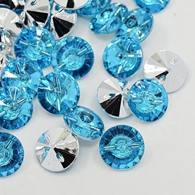 25 x Light Blue Round 15mm Acrylic Crystal Faux 1 Hole Buttons Knitting, Card Crafts, Scrapbooking, Bling, Clothes