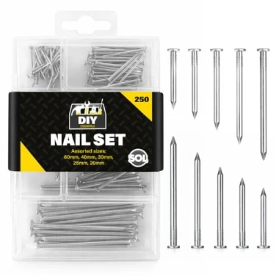 Ideal for Hanging Pictures – Perfect for everyday home use, these picture hanging nails make it easy to fix frames securely. Designed as nails for hanging pictures, they’re a handy choice for DIY and décor projects. Suitable for Walls & Brickwork – Use these strong wall nails for hanging pictures across a range of surfaces. The masonry nails for brick wall options provide added versatility for tougher materials. Assorted Sizes for Every Task – This assorted nails set includes 20mm, 25mm, 30mm, 40mm, and 60mm nails to suit a range of projects. For heavier or thicker walls, select the longer sizes to ensure a secure fix, giving you better results every time. Organised & Easy to Store – Supplied neatly in a compact nail box, keeping everything tidy and accessible. The mix of long nails and shorter sizes helps streamline your projects. Versatile Household Essential – Suitable for woodworking, repairs, and light construction, these wood nails are a practical addition to any toolkit. Reliable wall nails for everyday fixing jobs around the home.