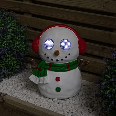 Brighten your garden with a dash of winter magic and a whole lot of charm with this Blinkin' Frosty Snowman. Whether you place him beside your garden path or greet guests at your front step, this light up decoration is the perfect way to add personality, movement, and festive glow to your holiday display.. Standing at 25cm tall, this festive character is made from durable polyresin, perfect for adding a cheerful and durable decoration to your outdoor decor. At nighttime, his eyes light up and blink or wink, giving him a lively, whimsical look that will stop guests in their tracks.. With a built-in timer function, the eyes light up automatically for 6 hours and then switch off for 18 hours, creating a hassle-free lighting schedule that conserves battery life while keeping the magic alive each night. Simply insert 3 x AA batteries (not included). Suitable for indoor and outdoor use.. Product Specifications. Height: 25cm. Requires 3 x AA (not included). White LEDs. Timer 6 on / 18 off