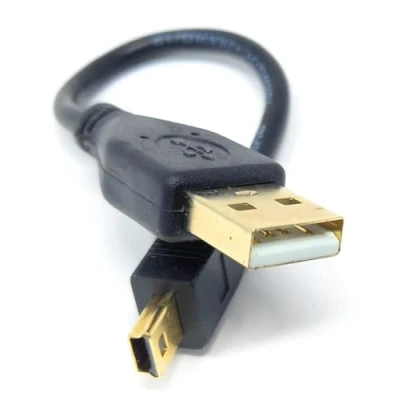 25cm Mini USB to 24AWG 2.0 Hi Speed A Male B 5pin Cable Power & Data Lead (0.8ft Black Gold Connectors)