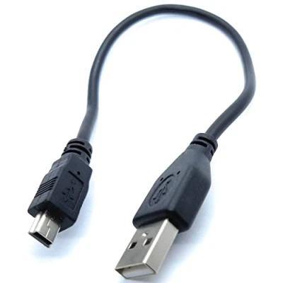 25cm short Mini USB to 24AWG 2.0 Hi Speed A Male B 5pin Cable Power & Data Lead 0.8ft Black Nickel Connectors