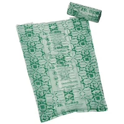 Roll of 25 bio-degradeable 25L compost food bags for use at home recycling food bins.