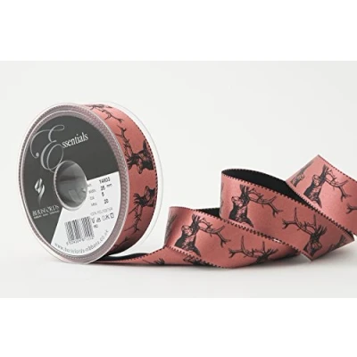 25mm Stags Satin Ribbon Berisfords 4 Colours with Black Back Per Metre