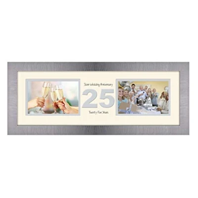 25th Anniversary Photo Frame Silver Wedding Twenty Fifth Gift Takes Two 6x4 Landscape Photos 1232A (Brushed Finish Cream Mount Grey Inside)
