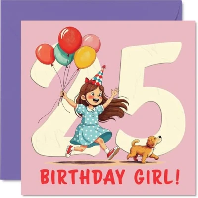 25th Birthday Cards for Women Balloon Girl Happy Card 25 Year Old Woman Niece Auntie Friend Daughter, 145mm Bday Greeting
