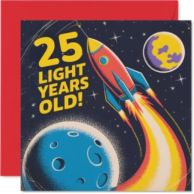 25th Birthday Cards for Women Men Light Years Old Happy Card 25 Year Woman Man Colleague Auntie Cousin Daughter, 145mm Bday Greeting