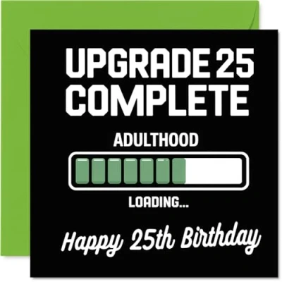 25th Birthday Cards for Women Men Upgrade Loading Happy Card 25 Year Old Woman Man Auntie Niece Son Husband, 145mm Bday Greeting