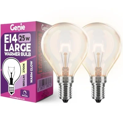 ⚡ ORIGINAL UK SPECIFICATION - Our bulbs feature the EXACT same specifications as the original UK version, ensuring you get the quality and performance you expect. ✅ PERFECT REPLACEMENT - These bulbs are designed as a direct replacement for mini warmers, making it easy to swap out your old bulbs with confidence. 💜 EXACT COMPATIBILITY - Our bulbs are exact compatibles of the original, maintaining the same shape and design that you know and trust. 💡 SMALL EDISON SCREW (SES) BASE (PYGMY) - Designed with a Small Edison Screw (SES) base (Pygmy), ensuring compatibility with UK warmer fixtures. ♻️ 15W ENERGY CONSUMPTION / WARM WHITE (2700K) - Enjoy energy efficiency with only 15W energy consumption while providing a warm white (2700K) illumination. 🕓 ~1000 HOURS LIFESPAN - Expect long-lasting performance with a lifespan of approximately 1000 hours, reducing the need for frequent replacements. 🌅 DIMMABLE WITH UV FILTER - Customize your lighting experience with dimmable capabilities and a built-in UV filter for added convenience and comfort. 🏵️ CERTIFICATION AND SAFETY - The CE Approved and ROHS Compliant design of this product reflects our dedication to delivering high-quality, reliable products to our customers., Manufacturer: Genie