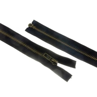 26" 66cm Antique Brass Metal Open End Zips Black per Single Zip