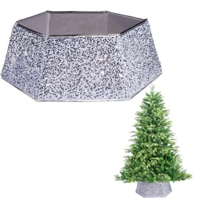 26.8inch Christmas Tree Skirt Foldable Sequin Xmas Stand Base Cover Collar Trunk Basket Ring for Decorations