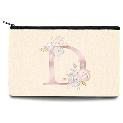 26 Letter Printed Zip Canvas Pouch Makeup Bag Make Up Bag, Cosmetic Travel Bag,Toiletry Bag,Organizer Bags,Toiletry Bags, Bride Bridesmaid Bag,Pencil Bag,Wash Bag,Coin Purse (Pink Flower D)