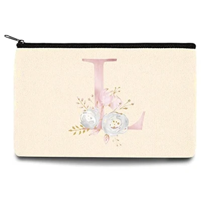 26 Letter Printed Zip Canvas Pouch Makeup Bag Make Up Bag, Cosmetic Travel Bag,Toiletry Bag,Organizer Bags,Toiletry Bags, Bride Bridesmaid Bag,Pencil Bag,Wash Bag,Coin Purse (Pink Flower L)