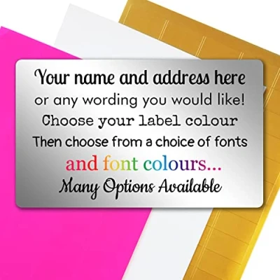 FAST CUSTOMIZATION: Simply add custom requirements for printed labels in the Customize Now section when ordering. Label size: each label measures 38.1mm x 21.2mm and will come on a sheet of A4 labels in your chosen colour Label Colours Available: Great choice of colours available such as white, gold, silver and pink. Text Colors: Our standard customization will be in black print, but we can print any color you want, even white for an extra cost. MULTIPURPOSE - Our custom self-adhesive labels can be used for envelopes, return addresses, parcels, greeting cards and more Easy to use: simply peel off the labels and stick to your desired item. With our labels with a good strong self-adhesive, they will adhere to any dry surface permanently. HIGH QUALITY PRINTS - Using the latest technology and software we always produce high quality prints for all our labels. Keeping all text crisp and crisp to your eyes. OUR UNIQUE PERSONAL TOUCH – We don't create boring labels; we like to make them as unique as possible. We have our own in-house designer who will make personalized address stickers stand out from the crown. Address labels will never be bland looking again! MADE IN THE UK - Our stickers are printed in the UK and we also have the material from British manufacturers. FSC Sourced Materials - It is important that what we use has a lesser impact on the environment. We always make sure that the labels and stickers we use are from FSC registered manufacturers.