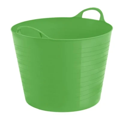 26-Litre Lime Green Small Flexi Tub. Manufactured from heavy-duty polyethylene with a versatile, flexible construction. Fitted with strong carry handles tested for heavy load. They are great for all sorts of jobs around the garden and home, such as toy boxes, laundry baskets, storage containers, plaster mixing as well as for odd jobs around the garden. This is a multipurpose flexible tub with 2 integrated carrying handles. It can also be carried like a carrier bag with both handles in 1 hand. They are also designed to stack inside each other (saving space whilst storing or transporting large amounts).