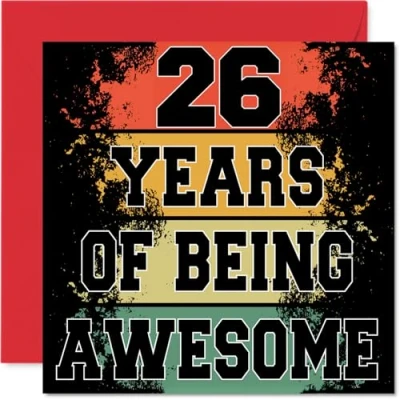26th Birthday Cards for Men Women Being Awesome Happy Card 26 Year Old Man Woman Niece Uncle Auntie Son, 145mm Bday Greeting