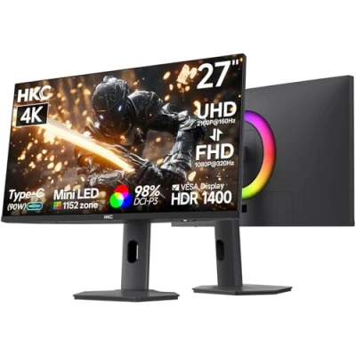 【Stunning Mini LED IPS Visuals】27" Mini LED IPS display with UHD 160Hz / FHD 320Hz,and 98% DCI-P3 delivers vibrant, lifelike colors and crisp, detailed visuals. 【Ultra-Fast 1ms Response】Experience blur-free, smooth motion with 1ms response—perfect for fast-paced gaming and competitive play. [Immersive HDR1400 Experience] Enjoy ultra-high brightness and high-contrast HDR1400 images. With 550 cd/㎡ brightness and a low blue light mode, every game, every movie, and every scene comes to life with vibrant colors, deeper blacks, and stunning detail. 【Ergonomic Adjustable Stand】Tilt, swivel, pivot, and 130mm height adjustment give you the perfect viewing angle for long gaming or work sessions. 【Versatile Connectivity & Eye Comfort】2× HDMI 2.1, DP 1.4, USB-C 90W, and USB 3.0 keep your devices connected, while Adaptive Sync and low blue light software protect your eyes for comfortable, immersive use.