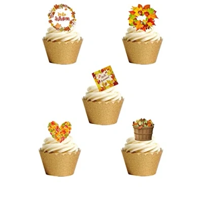 27 Stand Up AUTUMN Seasonal Pumpkin Themed Edible Wafer Paper Cake Toppers Decorations