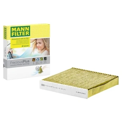 MANN-FILTER Cabin Air Filter FP 22 011 / Dimensions (mm): A = 216; B = 200; H = 35 / Premium Filter in Original Equipment Quality Biofunctional MANN-FILTER FreciousPlus cabin air filters - nearly 100% protection against nitrogen oxides, dust, allergens and mould - harmful gases and unpleasant odours are also eliminated and virus aerosols filtered The three-layer filter technology absorbs almost 100% of allergens, reduces the growth of molds and bacteria by more than 98% and stops fine dust almost completely Looking to find the correct filter? Select: brand, model, vehicle type, and engine type above to see which one fits your vehicle MANN+HUMMEL complies with REACH-regulation + supports the goal of Improved health and safety through the design, manufacturing, usage, disposal and recycling of our products
