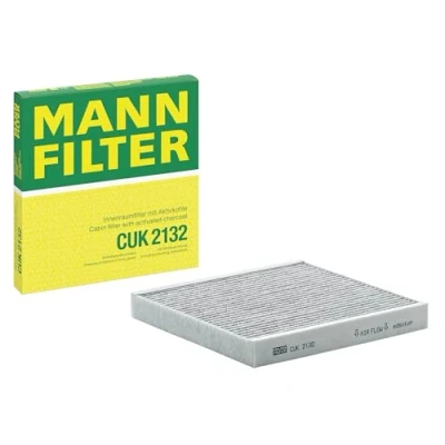 MANN-FILTER Cabin Air Filter CUK 2132 / Dimensions (mm): A = 214; B = 214; H = 26 / Premium Filter in Original Equipment Quality High-quality MANN-FILTER cabin filters with active carbon - nearly 100% protection from particles like pollen, diesel soot & tyre abrasion / Additional protection from harmful gases & unpleasant odour The trated highly-effective activated carbon gives protection against harmful gases such as ozone, nitrogen oxide or sulphur dioxide and eliminates unpleasant odours during the entire service interval Looking to find the correct filter? Select: brand, model, vehicle type, and engine type above to see which one fits your vehicle MANN+HUMMEL complies with REACH-regulation + supports the goal of Improved health and safety through the design, manufacturing, usage, disposal and recycling of our products