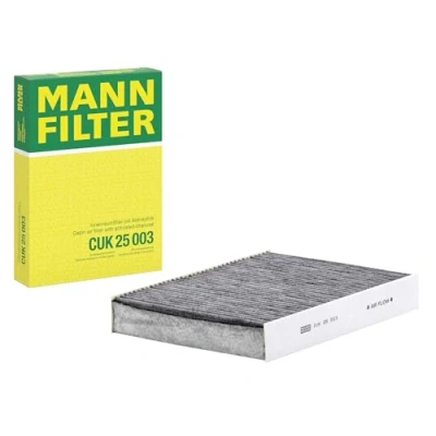 MANN-FILTER Cabin Air Filter CUK 25 003 / Dimensions (mm): A = 250; B = 180; H = 35 / Premium Filter in Original Equipment Quality High-quality MANN-FILTER cabin filters with active carbon - nearly 100% protection from particles like pollen, diesel soot & tyre abrasion / Additional protection from harmful gases & unpleasant odour The trated highly-effective activated carbon gives protection against harmful gases such as ozone, nitrogen oxide or sulphur dioxide and eliminates unpleasant odours during the entire service interval Looking to find the correct filter? Select: brand, model, vehicle type, and engine type above to see which one fits your vehicle MANN+HUMMEL complies with REACH-regulation + supports the goal of Improved health and safety through the design, manufacturing, usage, disposal and recycling of our products