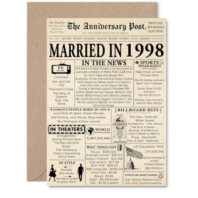 27th Anniversary Card for Men Women Newspaper Married in 1998 Happy 27 Year Wedding Wife Companion Partner Husband, A5 Anniversaries Greeting Cards