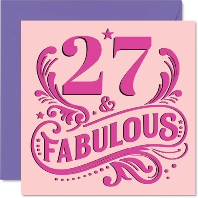 27th Birthday Cards for Women Fabulous Happy Card 27 Year Old Woman Sister Neighbour Niece Cousin, 145mm Bday Greeting