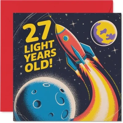 27th Birthday Cards for Women Men Light Years Old Happy Card 27 Year Woman Man Sister Niece Auntie Colleague, 145mm Bday Greeting