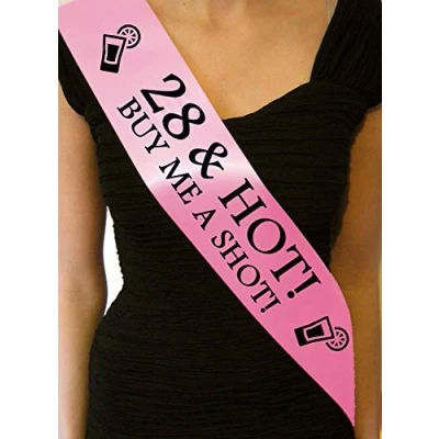 '28 & Hot - Buy me a shot' Party Sash - Baby Pink Our bold, eye catching Birthday sash will really make you stand out from the crowd. Hopefully you'll get a free shot from wearing this sash too! Memorable Keepsake - Our personalised sash isn't just for the moment, it’s also a keepsake to cherish your event and memories for years to come Cut from high quality satin ribbon, each sash comes complete with a secure safety pin ensuring a comfortable fit for each wearer. The sash measurements are 160cm x 10cm (62" x 4"), ideal for most adults., Weight: 0.0440924524 pounds, Manufacturer: Fancy Pants Store Ltd