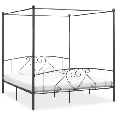 284445 Canopy Bed Frame without Mattress Grey Metal 180x200 cm Super King Vidaxl