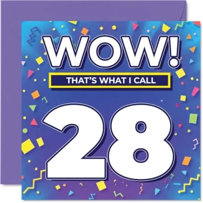 28th Birthday Cards for Men Women WOW Thats What I Call Happy Card 28 Year Old Man Woman Daughter Sister Uncle Niece, 145mm Bday Greeting