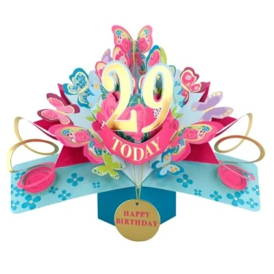 29 Today Happy 29th Birthday Pop Up Greeting Card Love Kate's Cards Her Design POP236MC29