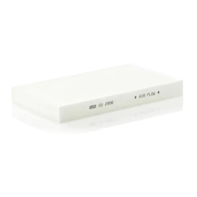 MANN-FILTER Cabin Air Filter CU 2956 / Dimensions (mm): A = 289; B = 160; H = 30 / Premium Filter in Original Equipment Quality High-quality MANN-FILTER cabin filters offer almost 100% protection against particles such as pollen, diesel soot and tyre abrasion - for a feel-good climate in the vehicle interior and protection of the air conditioning system Exact fit and perfect tightness ensure constant filtration performance during the entire service interval / Optimum vehicle interior ventilation due to the high air flow capacity Looking to find the correct filter? Select: brand, model, vehicle type, and engine type above to see which one fits your vehicle MANN+HUMMEL complies with REACH-regulation + supports the goal of Improved health and safety through the design, manufacturing, usage, disposal and recycling of our products