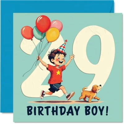 29th Birthday Cards for Men Balloon Boy Happy Card 29 Year Old Man Cousin Brother Son Uncle, 145mm Bday Greeting
