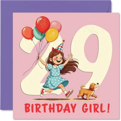 29th Birthday Cards for Women Balloon Girl Happy Card 29 Year Old Woman Colleague Sister Cousin Neighbour, 145mm Bday Greeting