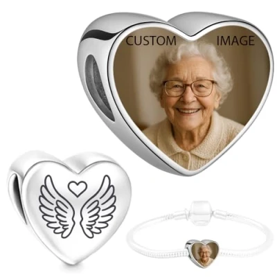 IMPORTANT: Use the tool to compose your custom Charm Heart. Please make sure the picture covers all printing area using zoom! Charm will be printed from the preview you created. WE RECOMMEND Only 1 person or pet for best effect. This Photo Bead is personalised with your own picture making it unique. NO group photos! NO text! NO collages! We do not provide engraving DIMENSIONS: Compatible with Pandora charms, Biagi, Troll and Chamilia European bracelets. Fit for both necklace and bracelet . (Small piece, please keep it away from children.) Material : Stainless Steel 316 , heart shape size: about 9*11MM Comes with Organza Pouch, 100% safe for sensitive skin Bracelet NOT INCLUDED. HEART CHARM ONLY PLEASE KEEP IN MIND +-5% GAP Between charm's edge and the picture