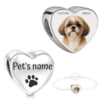 IMPORTANT: Use the tool to compose your custom Charm Heart. Please make sure the picture covers all printing area using zoom! Charm will be printed from the preview you created. WE RECOMMEND Only 1 person or pet for best effect. This Photo Bead is personalised with your own picture making it unique. NO group photos! NO text! NO collages! We do not provide engraving DIMENSIONS: Compatible with Pandora charms, Biagi, Troll and Chamilia European bracelets. Fit for both necklace and bracelet . (Small piece, please keep it away from children.) Material : Stainless Steel 316 , heart shape size: about 9*11MM Comes with Organza Pouch, 100% safe for sensitive skin Bracelet NOT INCLUDED. HEART CHARM ONLY PLEASE KEEP IN MIND +-5% GAP Between charm's edge and the picture