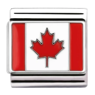 2Burned Italian Charm Flag for 9 mm Bracelets Stainless Steel (Canadian flag)