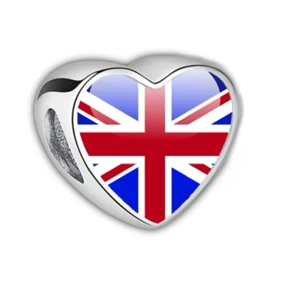2Burned Love Heart Photo Alloy Zinc Bracelet Charm Bead Gift Fit Pandora (Union Jack Flag)