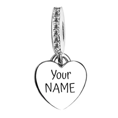 IMPORTANT: Use the tool to compose your custom Engraved Charm Heart. This engraved dangle is personalised with your own text making it unique. DIMENSIONS: Fits Most European-Style Bracelets and Necklaces. Fit for both necklace and bracelet. Size: 1 cm x 1cm . (Small piece, please keep it away from children.) Material : The product is made of 100% S925 Sterling Silver , Weight 2.3 g 100% safe for sensitive skin Comes with Organza Pouch