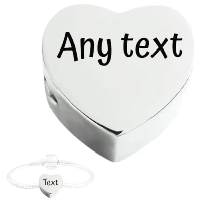 Personalised Custom engraved heart charm stainless steel for pandora european bracelet text name UK Stock Stainless steel also has hypoallergenic properties so it is suitable for people with sensitive skin Dimensions: Fits Most European-Style Bracelets and Necklaces. (Small piece; please keep it away from children.) Includes: Comes with an organza pouch. Note: Bracelet not included. Heart charm only.