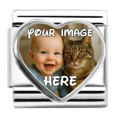 How to add a photo: click on ‘’CUSTOMISE NOW’’ and upload a file from your device. Add Your Image, Add Your Own Photo, Create personalised link Fit your image using ZOOM and ROTATION. Once finished click on ‘’Add to Basket’’ and proceed to checkout. NO group photos! NO text! NO collages! We do not provide engraving What image to choose: Bright sharp contrast images provide the best results. Maximum 3 people / pets with heads close together. We may crop your original photo to take out any background that is not needed. Collages, group photos or photos where subject and background have similar colour are not recommended. Please avoid text on the picture as it might not be readable. Material: Rhodium plated Silver Stainless Steel . Stainless steel is a highly durable metal, allowing it to withstand the wear of everyday activities. It is a very hard metal which resists corrosion and oxidation. Silver Stainless steel also has hypoallergenic properties so it is suitable for people with sensitive skin. Characteristic: the image size is 1 x 1 cm (0.39 inches). A special jewellery resin is used to protect your design. Thermal Printed Image: High-resolution, vibrant colours that stay sharp over time.Waterproof & Durable: Built to last, resisting tarnish and keeping its shine for years. Personalised Silver Photo Charm Link – Fits 9 mm Italian Style Bracelets Modular Emotional Gift: A touching present for mums, girlfriends, wives – ideal for anniversaries, birthdays or pregnancy reveals. Baby Scan Charm: Carry your first baby photo wherever you go – perfect for expectant mothers and sentimental partners.