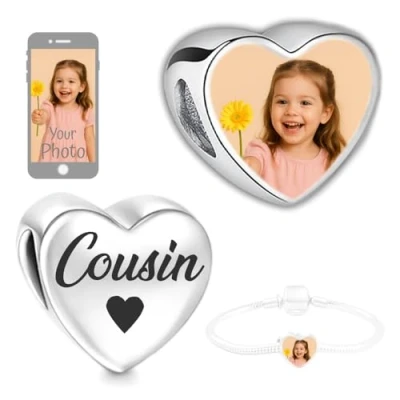 2Burned Personalised Love Heart Photo Alloy Bracelet Charm Bead Gift Fit European bracelets (Cousin)