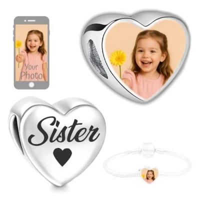 2Burned Personalised Love Heart Photo Alloy Bracelet Charm Bead Gift Fit European bracelets (Sister)