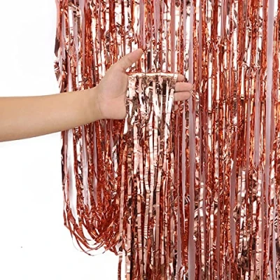 2m/2.5m/3m Foil Door Curtain [3m, Rose Gold] Can be used as a sparkling backdrop to a photoshoot Material: Made from 100% PET plastic Suitable for: Parties, weddings, birthdays and much more. Assembly: Comes with an adhesive strip for easy application., Manufacturer: Spire Imports LTD