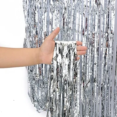 2m/2.5m/3m Foil Door Curtain [3m, Silver] Can be used as a sparkling backdrop to a photoshoot Material: Made from 100% PET plastic Suitable for: Parties, weddings, birthdays and much more. Assembly: Comes with an adhesive strip for easy application., Manufacturer: Spire Imports LTD
