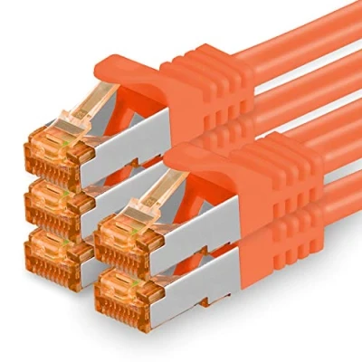 2 m - Orange - Pack of 5 Cat7 Network Cable Patch Cable Ethernet Cable High Quality LAN Cable Ethernet Cable Compatible with Cat5 Cat.5 Cat5e Cat6a Cat.6a Cat8 Cat.8 Network cable, patch cable, Ethernet cable for all Internet speeds Cat.7 Patch Cable for Smart TV Sat Receiver Powerlan Stick ISDN Telephones Internet Radio Patch Panel Hub Switch Network Socket Patch Panel Multimedia Device Media Player Network Printer Print Server Cat7 network cable connects Internet WiFi router repeater Telekom DSL modem Fritzbox notebook laptop PC computer printer print server and all devices with RJ45 connection Optimal connection of all multimedia applications such as TV, player, smart TV, TV box, game console, hifi receiver.