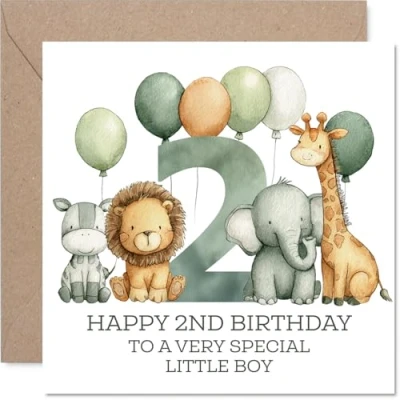 2nd Birthday Cards for Boys Jungle Numbers Happy Card 2 Year Old Boy Nephew Cousin Step Son Godson, 145mm Bday Greeting