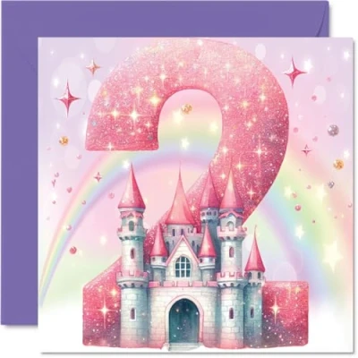 2nd Birthday Cards for Girls Fairy Princess Castle Happy Card 2 Year Old Girl Sister Cousin Goddaughter Step Daughter, 145mm Bday Greeting