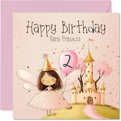 2nd Birthday Cards for Girls Pink Fairy Princess Happy Card 2 Year Old Girl Daughter Sister Step Great Niece, 145mm Bday Greeting